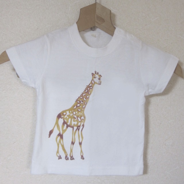 キリンを大胆に配置した人気の子供用Tシャツ 80サイズのみ肩にスナップボタンあり